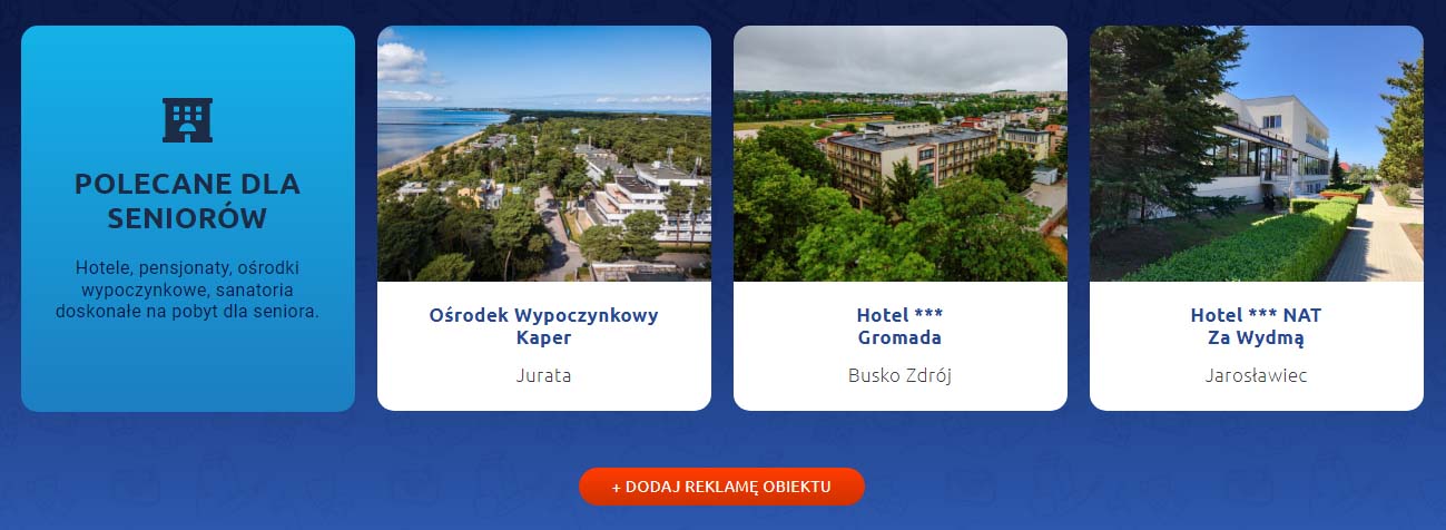 Na stronie głównej w sekcji „Blok reklamowy” prezentujemy wyróżnione oferty, które wyświetlane są stale i linkowane bezpośrednio do podstrony wizytówki oferty.